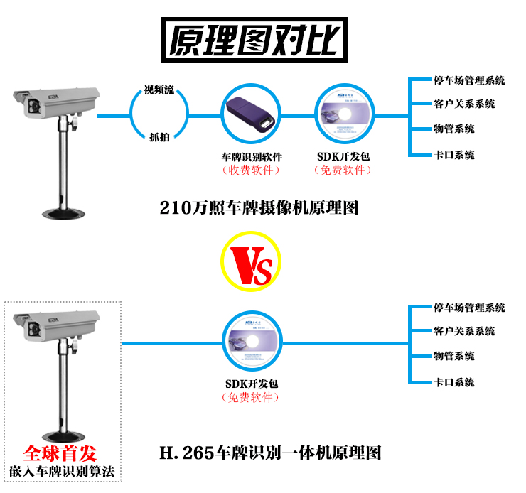 车牌识别摄像机深圳安视宝科技有限公司(http://www.anshibao.com):H.264是目前最先进的视频编码技术,在同样的图像质量前提下,其码流是MPEG-4的一半还不到,可以人量节省存储空间及带宽占用,这点对于有大量视频传输及存储需求的网络视频监控系统是至关重要的。H.264的高效编码是以更加复杂的算法为代价的,H.264采用先进的帧间预测模式,包括复杂的运动估计、1/2和l/4像素预测;先进的帧内预测模式,包括多达13种帧内预测模式;H.264引进全新的环路滤波技术,对图像质量提高大有帮助。在H.264中,应用上述的新技术均需要大量的运算处理资源,对视频编解码处理平台(主要是CPU及多媒体芯片)也提出了更高的速度要求。任何行业都需要标准,视频监控行业也样。H.264算法是目前先进、主流、有前景的视频编码算法,但是未来需要各个视频监控厂家共同努力,克服目前没有标准、自成标准、多个标准的情况,做到标准编码,通用解码,这对于大型联网视频监控系统非常重要。在网络视频监控系统中,视频编解码技术是前提,正是视频编解码技术的不断发展,促成网络视频监控技术逐步走向成熟应用。网络视频监控系统应用中,视频编码技术主要应用在编码器、DVR及IP摄像机上。视频编码可以基于硬件或软件,各种视频编码算法的具体应用,而解码技术主要应用在硬件解码及PC客户端软件上,是视频编码过程的逆向过程。视频编码技术是一门复杂的信息科学,在实现过程中,需要大量的复杂的算法、变换过程及参数配置,而视频编码技术在网络视频监控系统应用中,通常还需要考虑成本、效果、效率等多种因素,对编码实用性及适用性要求较高。视频编码技术在网络视频监控应用中主要是一个成本平衡问题。我们采用视频编码技术的出发点是利用芯片及算法,对数据进行压缩,然后进行传输和存储,而后在需要的时候,再进行解码显示。