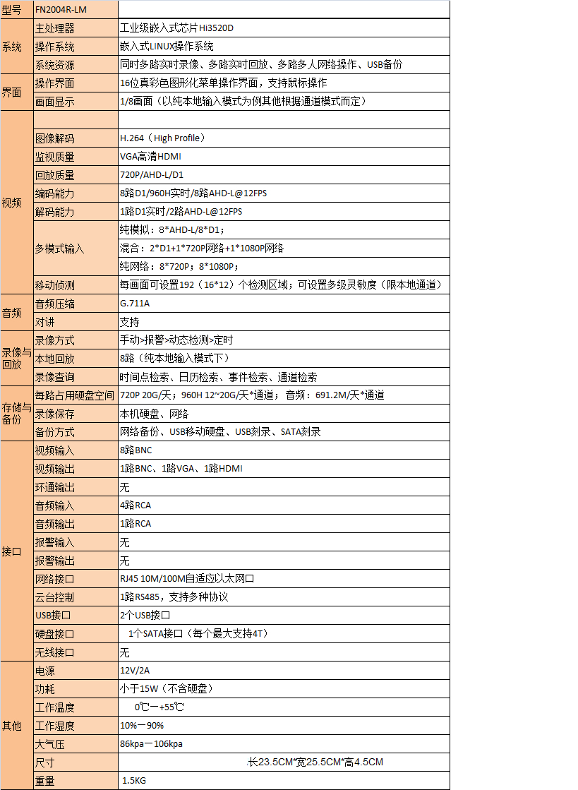 1,纯模拟:8路AHD-L,或8路D1;