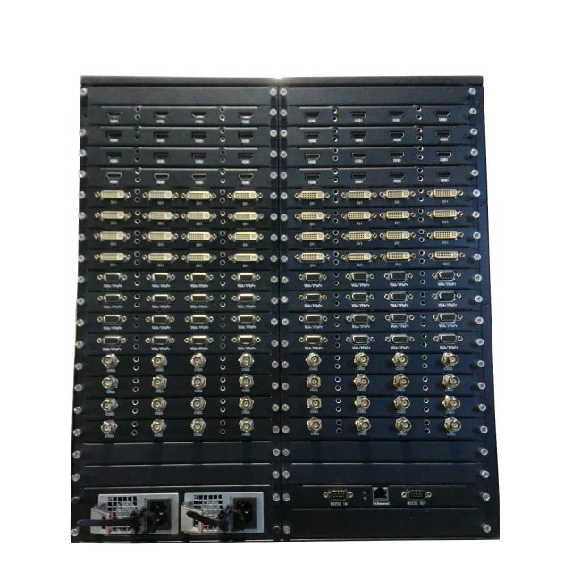 高清混合矩阵矩阵是为了将各种模拟或数字视频信号统一进行重新分配和组合的交换设备。该设备可将多路CVBS、VGA、YPbPr、HDMI、DVI和 SDI视频输入信号切换到多路输出通道的任意通道上去。且输出通道可任意选择CVBS、VGA、YPbPr、HDMI、DVI或SDI接口。可广泛用于需 要进行多种视频信号分配和组合的场合,应用领域涉及军工、多媒体教学、电视电话会议、金融、科研、气象等领域。