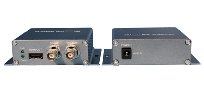SDI->HDMI转换器是一款专用于单路高清数字分量串行接口(3G-SDI,HD-SDI)信号转换为HDMI 信号的设备。该设备集成SDI 接收器及HDMI 编码器,可方便的将SDI 信号转为HDMI 信号,同时会将SDI所带音频信号分离转换后嵌入到HDMI 信号中,以实现声音及图像同步传输。其工作原理是把单路数字分量串行接口(SDI)信号通过转变成TMDS信号,从而可以将高清摄像机和带HDMI接口的显示终端连接起来。同时这款设备还带有输出一路SDI信号环出的功能。