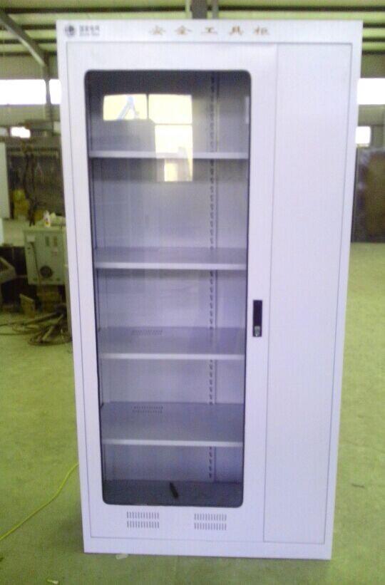 4. 表面:静电防腐喷塑工艺.颜色为驼灰邹(可自选).柜门装有通体透明有机玻璃.通过玻璃门可以看到分类有序的各种工器具.