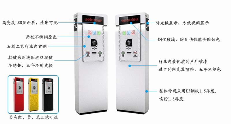 高档社区、商业大厦、政府机关单位、机场、大型文化展馆、商业广场、展览会等车流量大的公共应用场合。