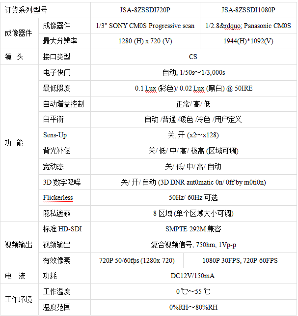 高清SDI摄像机具有高像素、高帧率、高画质的特点,特别适合在智能交通、安防监控等领域的应用,同时也可应用于机器视觉、自动检测、医学影像、生物成像、显微成像及其他工业、医疗、科研。