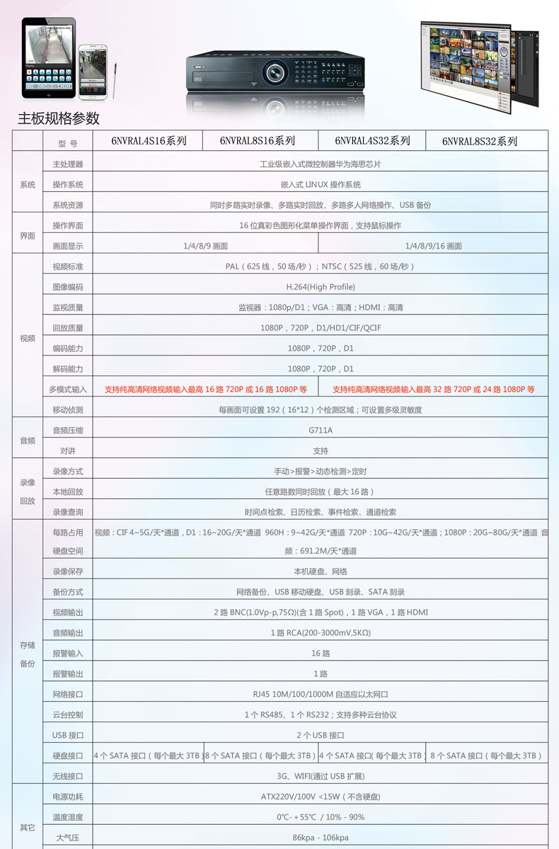 24路1080P嵌入式NVR 硬盘录像机报价 网络摄像头安装