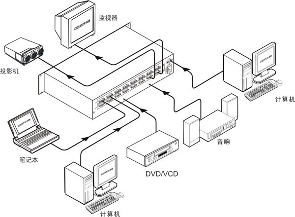 2)16路VGA电脑信号输入;16路VGA电脑信号输出,可完全交叉切换