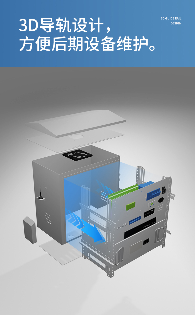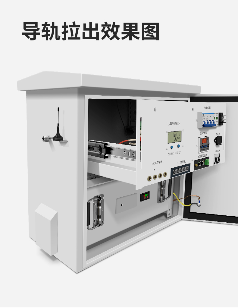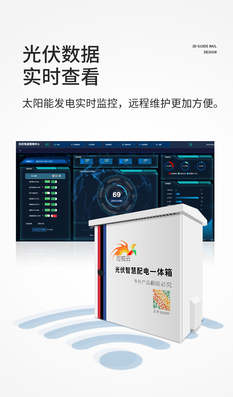 东莞市易云电子科技有限公司自主研发的可视云光伏太阳能智慧配电一体箱,导轨设计,电气部分可以自由拉出,方便后期维护。