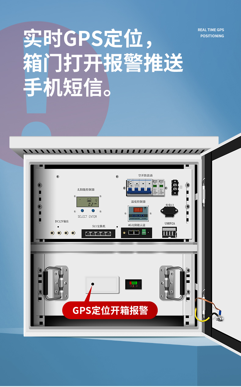 GPS定位防盗跟踪功能,能实时打开箱门发送报警信息到业主,断电报警功能,设备离线报警。