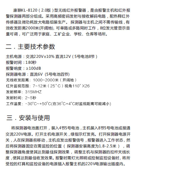 康联 家用防盗报警器 KL-8120