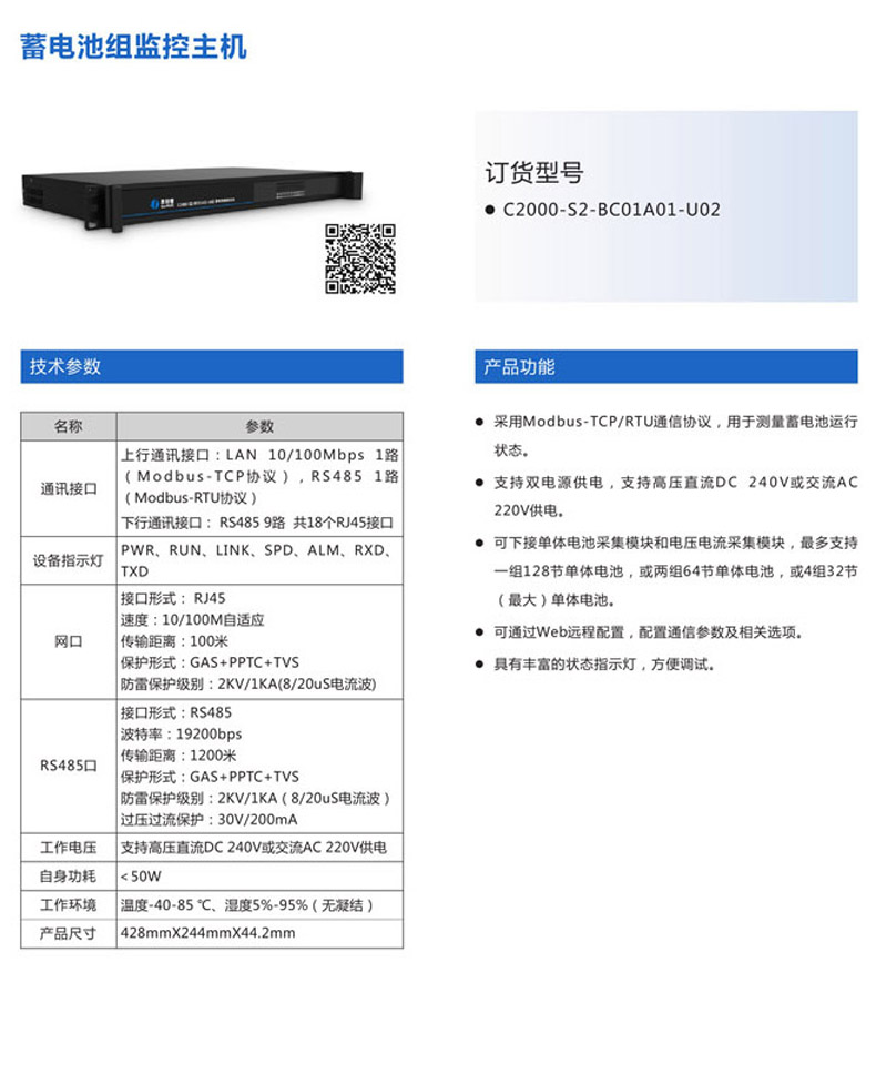 蓄电池组监控主机C2000-S2-BC01A01-U02