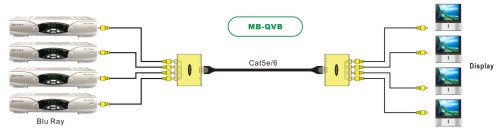四路复合视频延长器MB-QVB是一款混合视频信号双绞线延长设备,该设备具有高保真还原图像色彩能力,支持NTSC, PAL, SECAM等视频格式,传输距离可达670米,可应用于课堂视频,商业和家庭视频系统,医院视频培训,视频会议,讲台上演示系统等等。