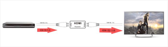 *可以在HDMI显示器设备间长距离放大传输信号:(输入:25米,输出:15米)