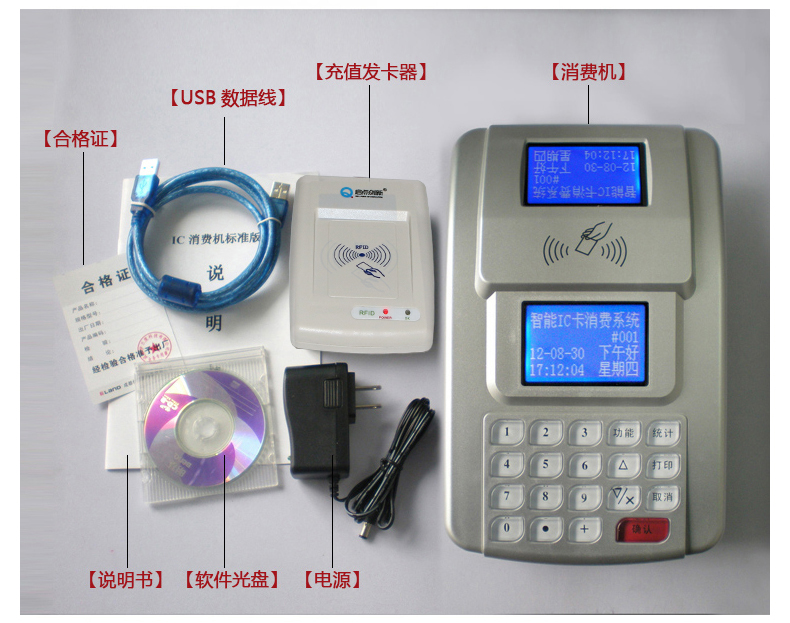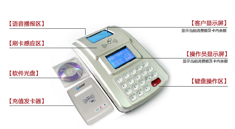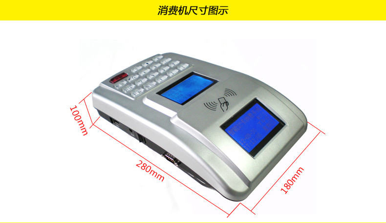 | 产品详情 全功能液晶消费机 型号:QDXF-9 技术参数: 外形尺寸:28.3cmX18.0cmX9.6cm 通信接口:RS232、RS485或TCP/IP 外接电源:DC12V/1000MA 存储容量:9999条记录(个性化消费除外) 工作环境:温度-10~50 后备电池:5小时 读卡距离:IC卡:5cm 传送速率:19200BPS 主要功能: 1、脱离计算机和服务器独立运行,是计算机储存数据的又一新型替代产品。 2、军工级存储芯片,可存贮大容量数据;内置RS232、RS485、TCP/IP网络通讯,使数据的准确性达到100%,避免了读写卡的不准确及其他因素造成的资金流失。 3、集消费、充值、查询于一体,功能更强大。 4、日限额、限次、超额密码消费、卡有效期限制等功能:保障用户消费行为的安全性。 5、499种中文消费菜单,人机对话更明晰;定额消费/非定额消费设置,功能更庞大。 6、订餐、报餐功能:先预定,后消费,杜绝食物浪费。 7、消费会员积分功能。 8、刷卡间隔时间设置:避免单卡重复误刷行为。 9、交易纠错功能:对错误的扣款行为进行删除、退款。 10、数据防溢出功能:消费记录存储空间容量告警,提示采集数据,并停止刷卡消费,防止数据流失。 11、可外接小票打印机,针式、热敏皆可。 12、可按实际需求外接密码数字键盘。 13、软件操作简单,方便易学,报表功能完善。 14、可定制繁体、英、法、俄、日、韩等语言。 主要用途: 适用于食堂、娱乐场所、商店、中小型超市,货品销售、业务收费、连锁经营、积分统计等用途。 |
