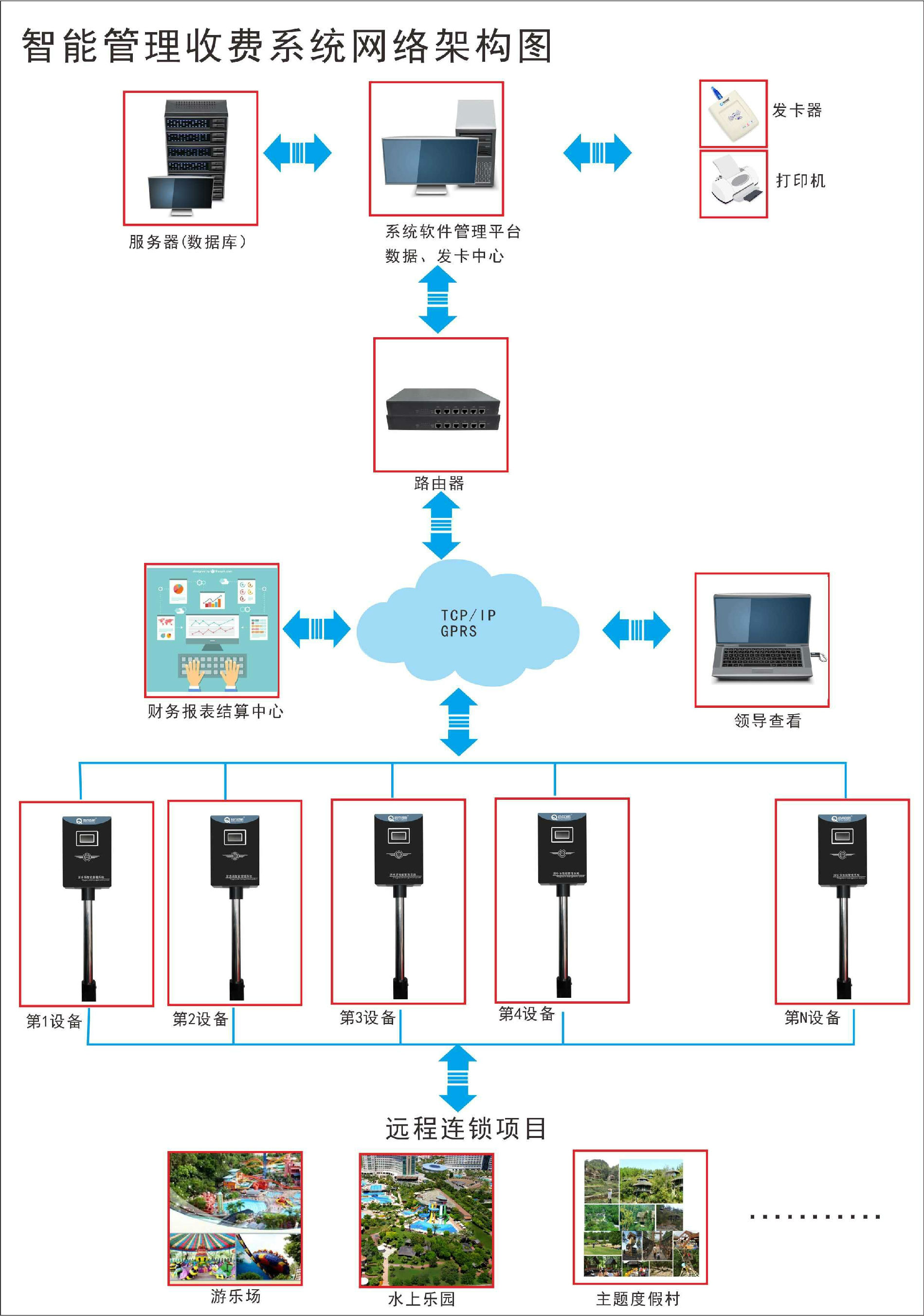 系统实现远距离连锁店以太网、局域网等接入,可以实现多业主管理、多连锁店管理。