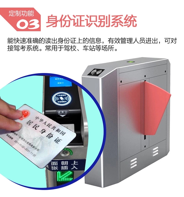 整个产品外形采用不锈钢板冲压成型,造型美观大方,防锈、耐用,且系统对外采用标准电气接口,可方便的将条码卡、ID卡、IC卡等读写设备集成在本设备上,从而为出入人员提供有序文明的通行方式,并可杜绝非法人员进出,同时为了满足消防通道的要求,在紧急情况下停电落杆,组织人员疏散。