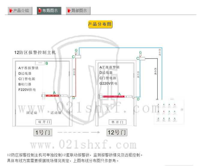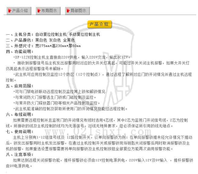 *此主机可应用控制及监控12个防区(12个控制点),通过远程了解所对应门的开闭情况并通过主机远程控制。
