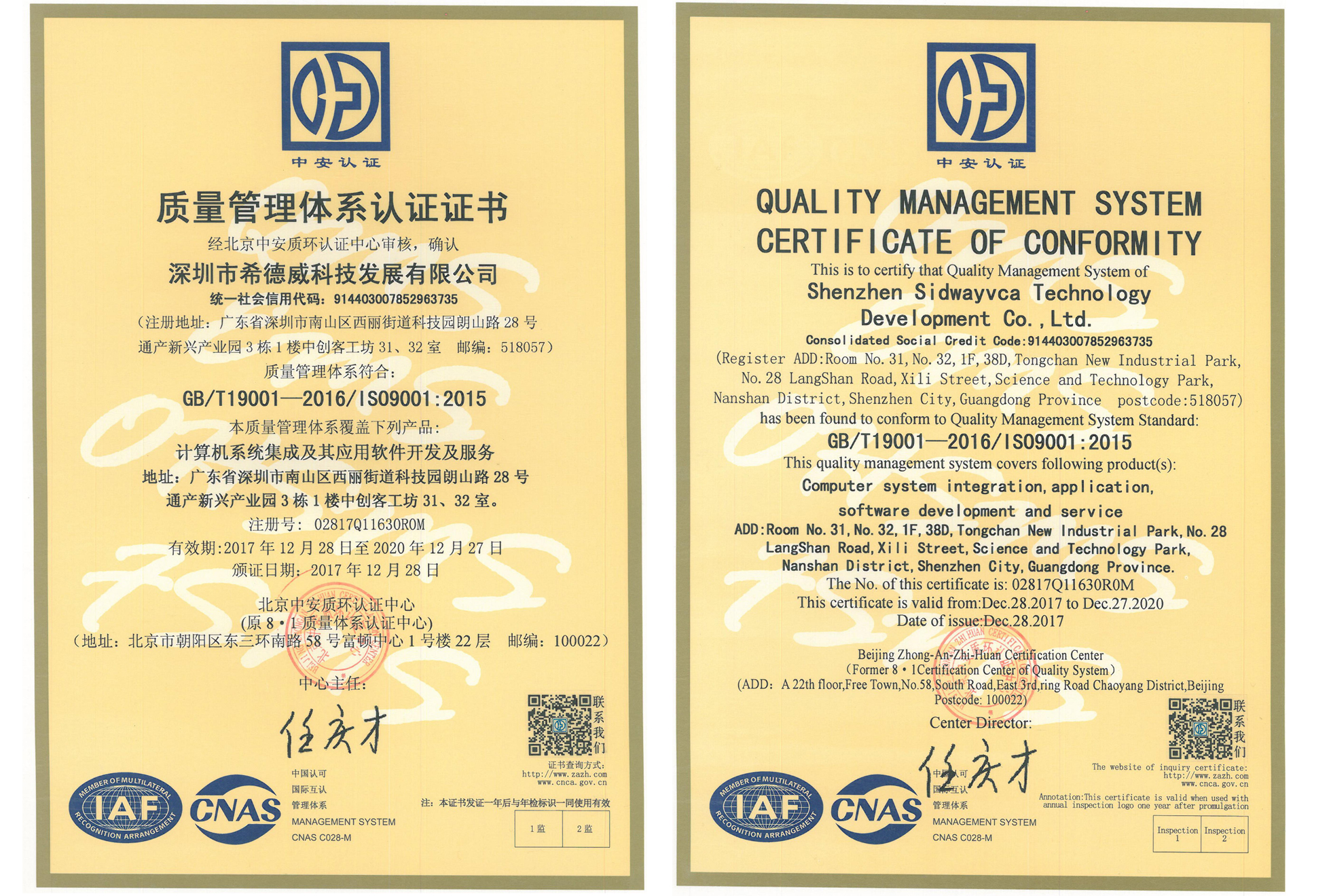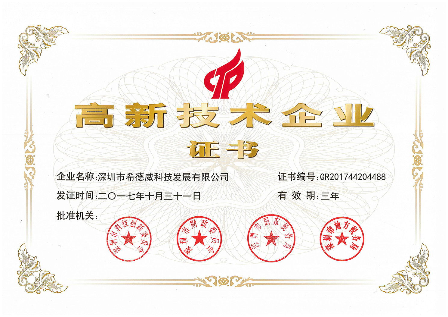 国家高新企业证书