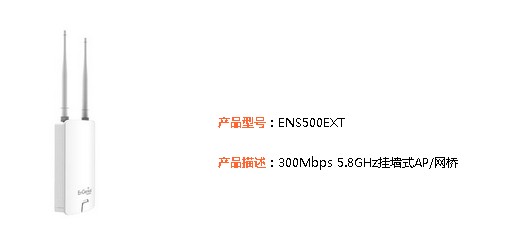 ENS500EXT室外型AP符合802.11a/n标准,可以为用户提供更高的速率和更好的覆盖;