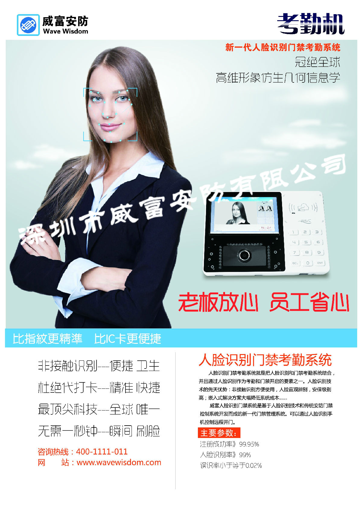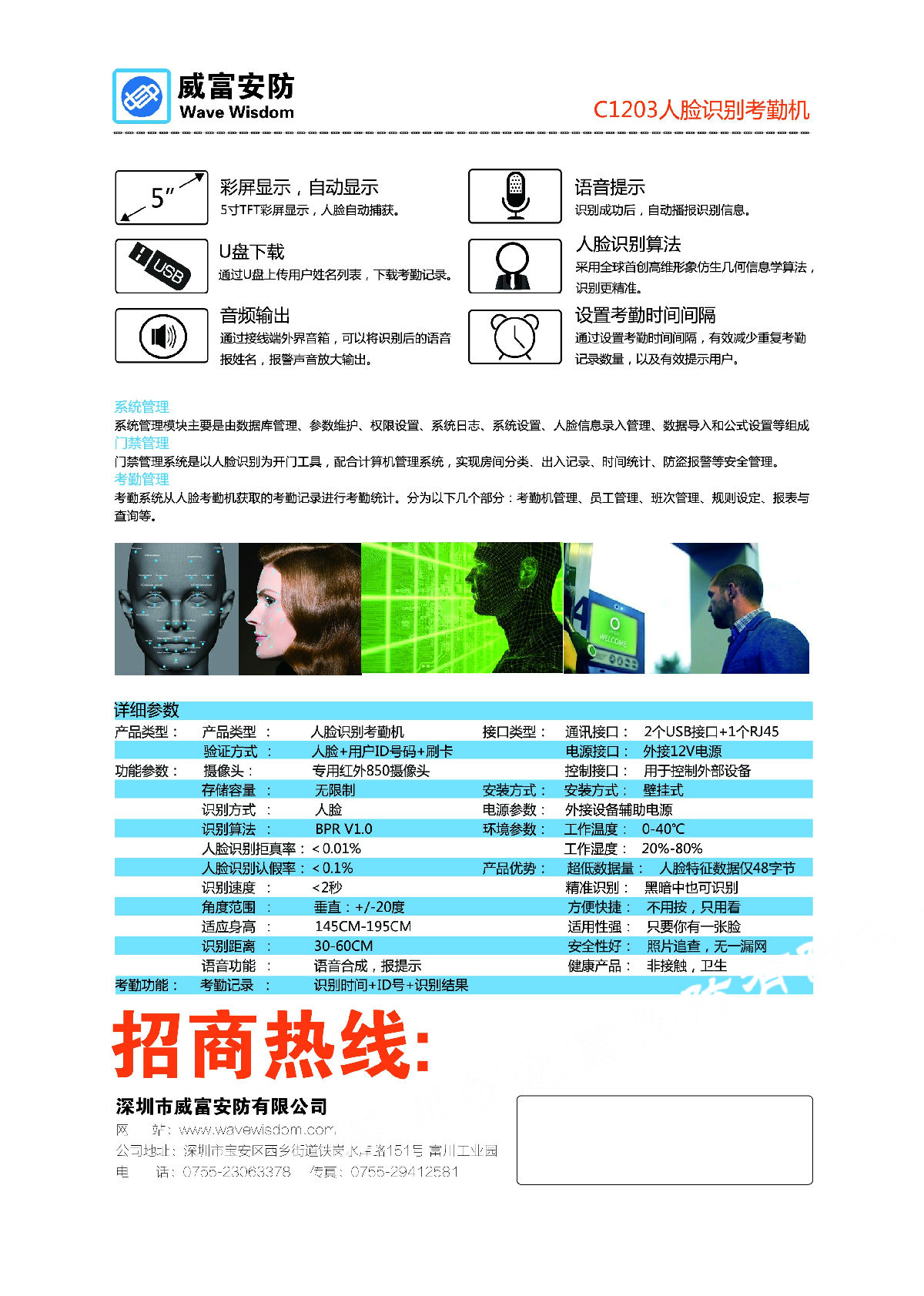 威富安防人脸识别考勤一体机 智能办公无限存储 考勤机+数据采集终端 精准快捷 C1203