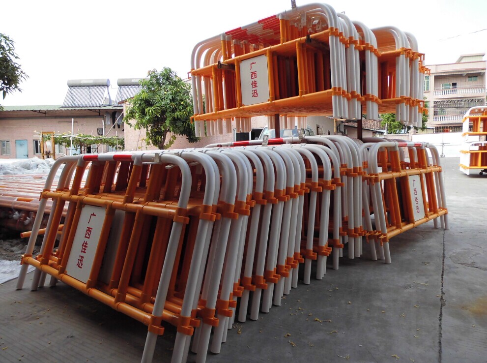 本公司PVC护栏货源充足,交期、质量保证,有多年的香港、澳门、马来西亚供货经验。PVC护栏规格有:2米X1米、1.5米X1米、1米X1米、1.5米*1.2米。(规格可根据客户要求定制)底脚材质为优质的橡塑材料,外观有A字款、人字款、拱形A字款三种,底座可以360°旋转。护栏中间板可以根据客户要求设计内容、LOGO等。护栏外形可以根据客户要求设计、生产;颜色可以根据客户的要求订做,PVC管原色有黄、白、红,其余颜色采用喷油工艺加工;PVC管的厚度默认为2mm,可以根据客户需要选用3mm的高强度管。