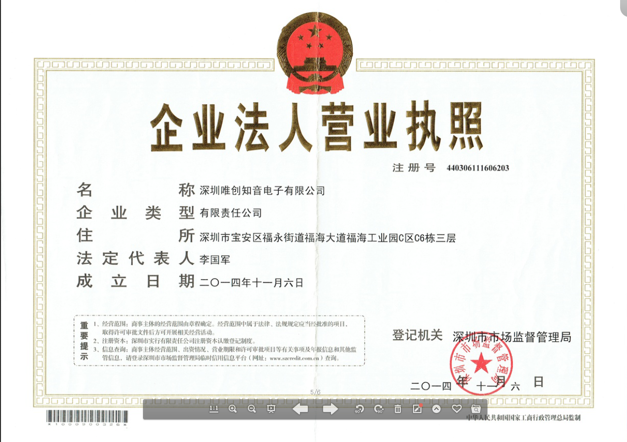 唯创知音营业执照