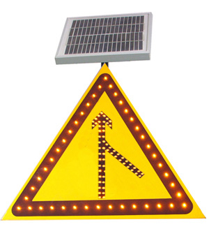 太阳能合流标志牌在无电源的高速公路互道前段,主动发光的交通标志显现出了强大的提示作用,其可视距离是以反光膜作为反光材料的标志牌的数倍,其动态效果也是普通标志牌所不可替代的警示效果。特别在现代的高速路、城市道路中,夜晚驾驶者很难迅速认清被淹没在霓虹灯光、广告灯箱中的传统交通标志,此时发光标志的主动发光性能显得尤为重要。
