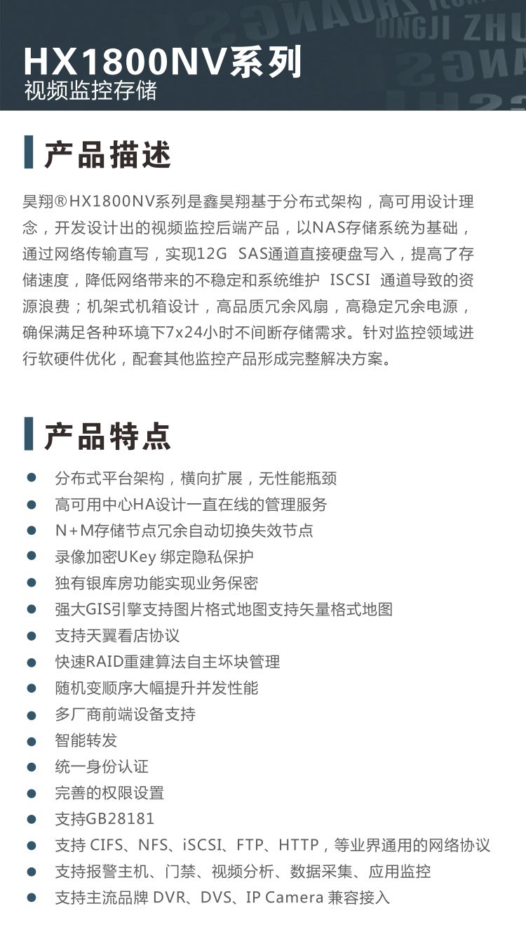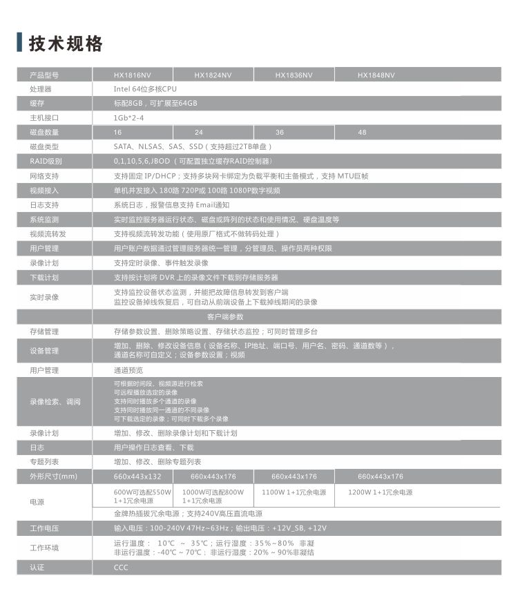 昊翔® HX1800NV系列 视频监控存储