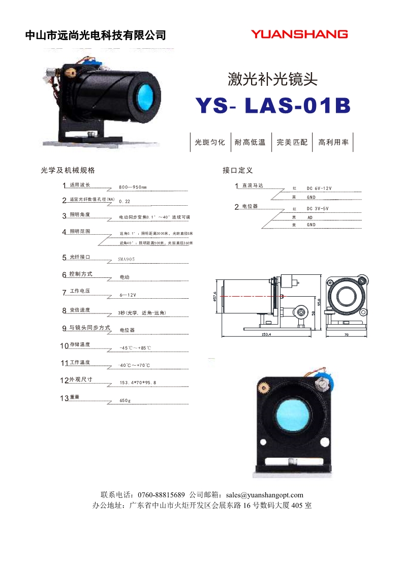 适用波长:800-950nm 适宜光纤数值孔径(NA):0.22 照明角度:电动同步变焦0.1° ~ 40°连续可调
