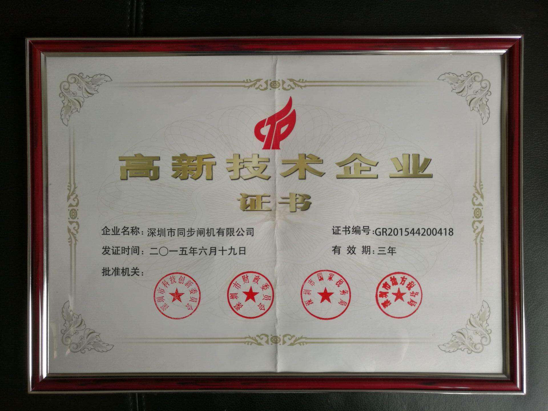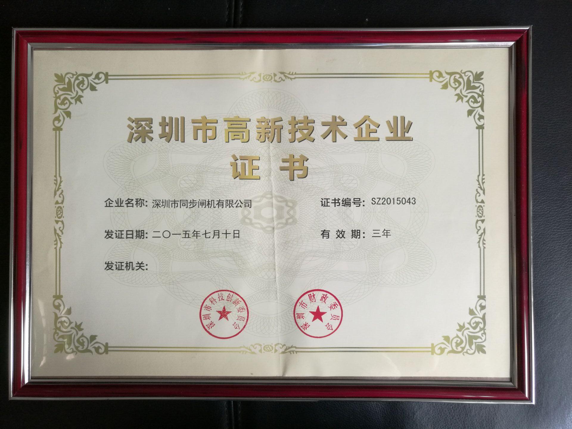 深圳高新技术企业证书