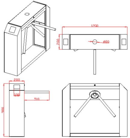 工作电压 | DC 24V、2.2A | 通行速度 | 常开60人/分钟 常闭30人/分钟 | |